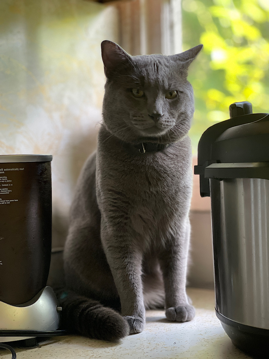 He just looks so regal. This is one of his favorite spot in the kitchen. He likes to watch the birds outside.